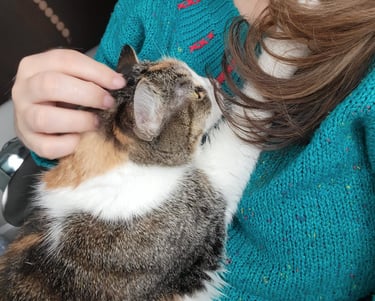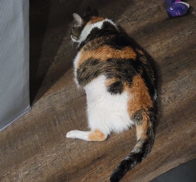 On October 4th, 2023, I noticed Athena was acting quite strange. She was lying in the middle of the floor, which was unusual for her. I picked her up and gave her a daily dose of medication which should help with any discomfort. She hardly fought me at all as I stuck the syringe in her mouth and pushed the medication out. Knowing that she wasn't feeling great I laid her on the couch instead of putting her on the ground, where she would normally be greeted by the dogs and scamper away.