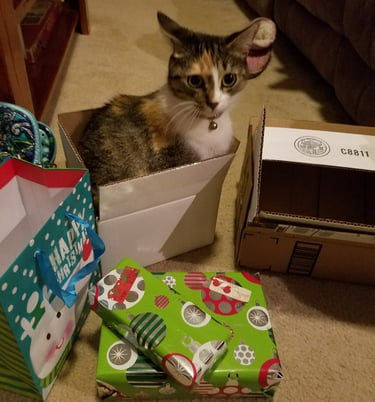 Athena's gotchya day was May 12, 2013. She was one of her litter, all whom were sick. Her eyes were closed and full of gunk. I couldn't save them all but, I could save one. I took Athena home in a 3-hour car ride.